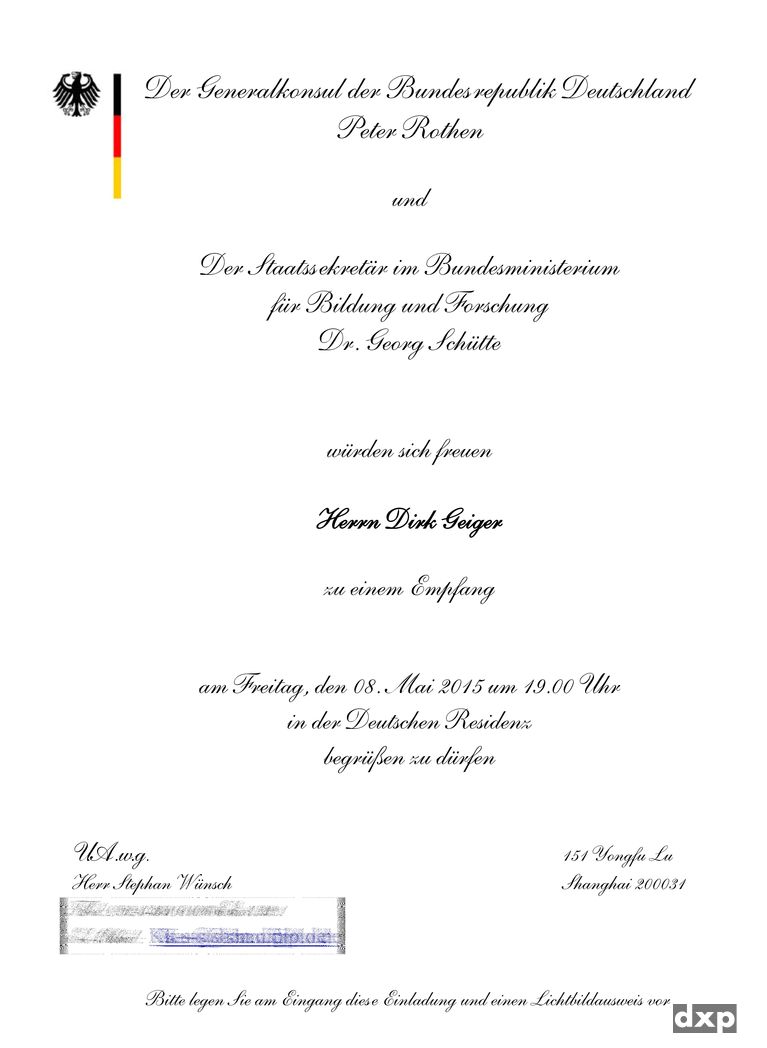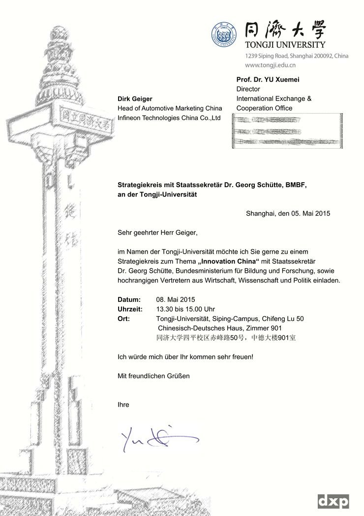 Besuch der Tongji University , des Chinesisch-Deutsche Hochschulkolleg (CDHK), Einladung zum Strategiekreis mit Staatssekretär Dr. Georg Schuette, BMBF und Abends noch Empfang beim Generalkonsul der Bundesrepublik Deutschland Peter Rothen. Ein spannender Tag!