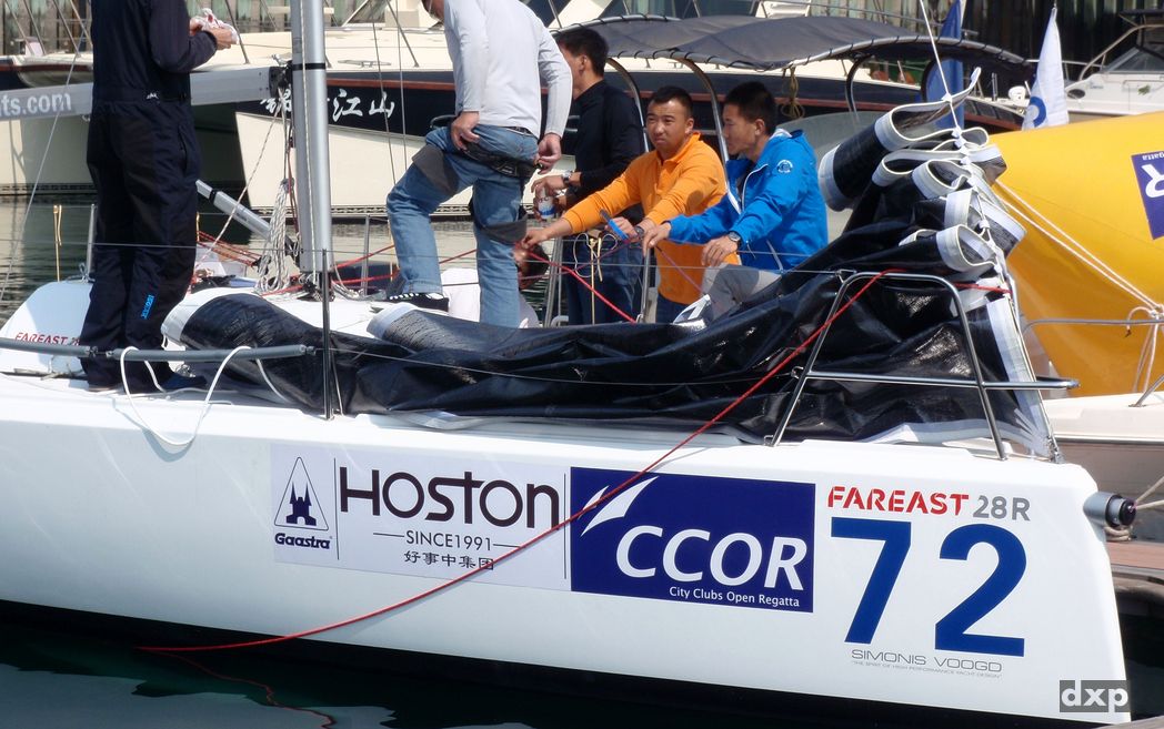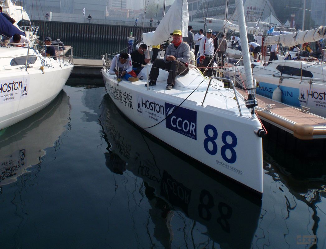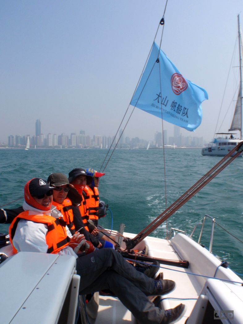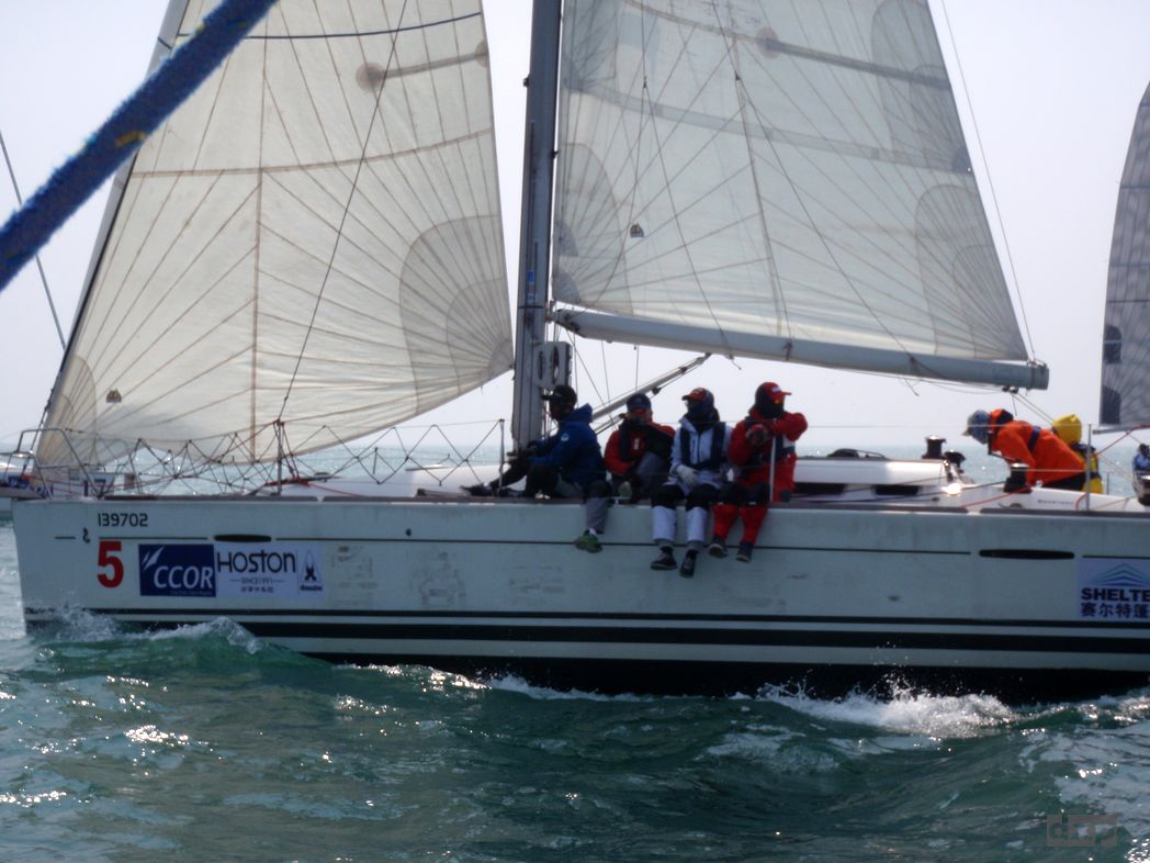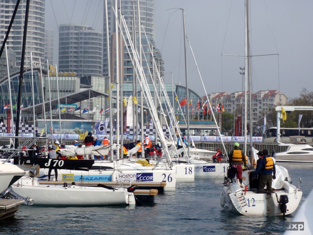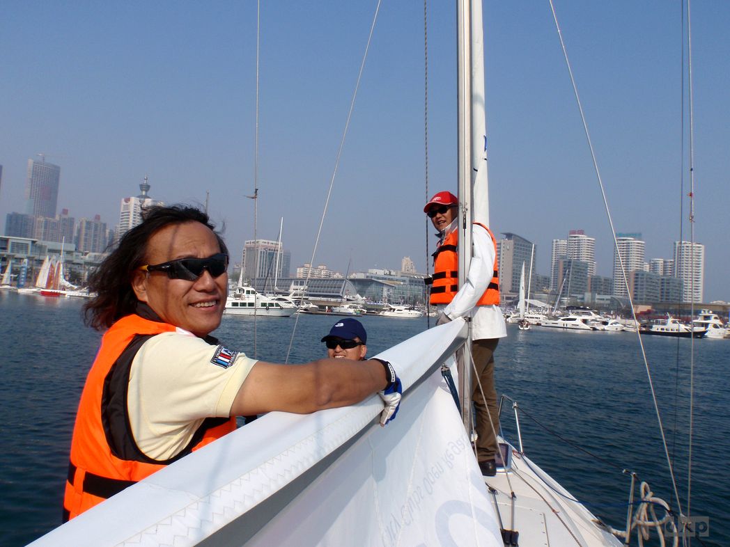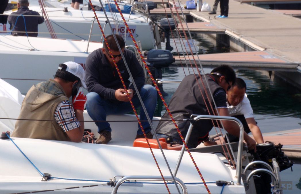 Samstag ist Anreise. Mit Frederick komme ich aus Shanghai angereist. Am Steg treffen wir das restliche Team. Sand wohnt in Qingdao. Yesir und Fan sind schon einen Tag vorher angereist. Wir hatten die letzten Monate keine Zeit zum Trainieren. Spinnaker hatten wir noch nie zusammen probiert. Wir machen das Boot klar. Um 16:00 ist Skipper Meeting. Vorher muessen wir noch mal mit raus zum ueben.