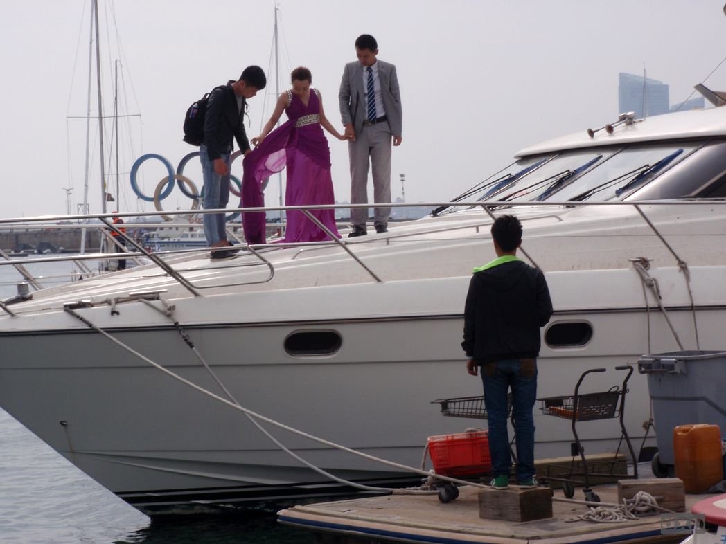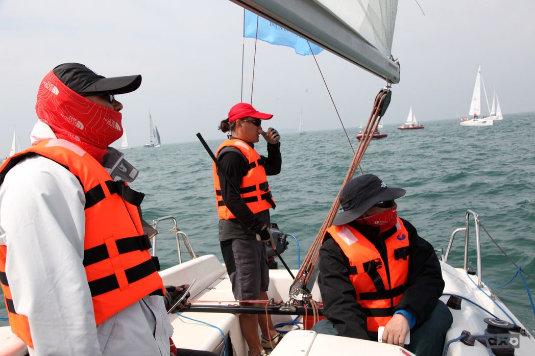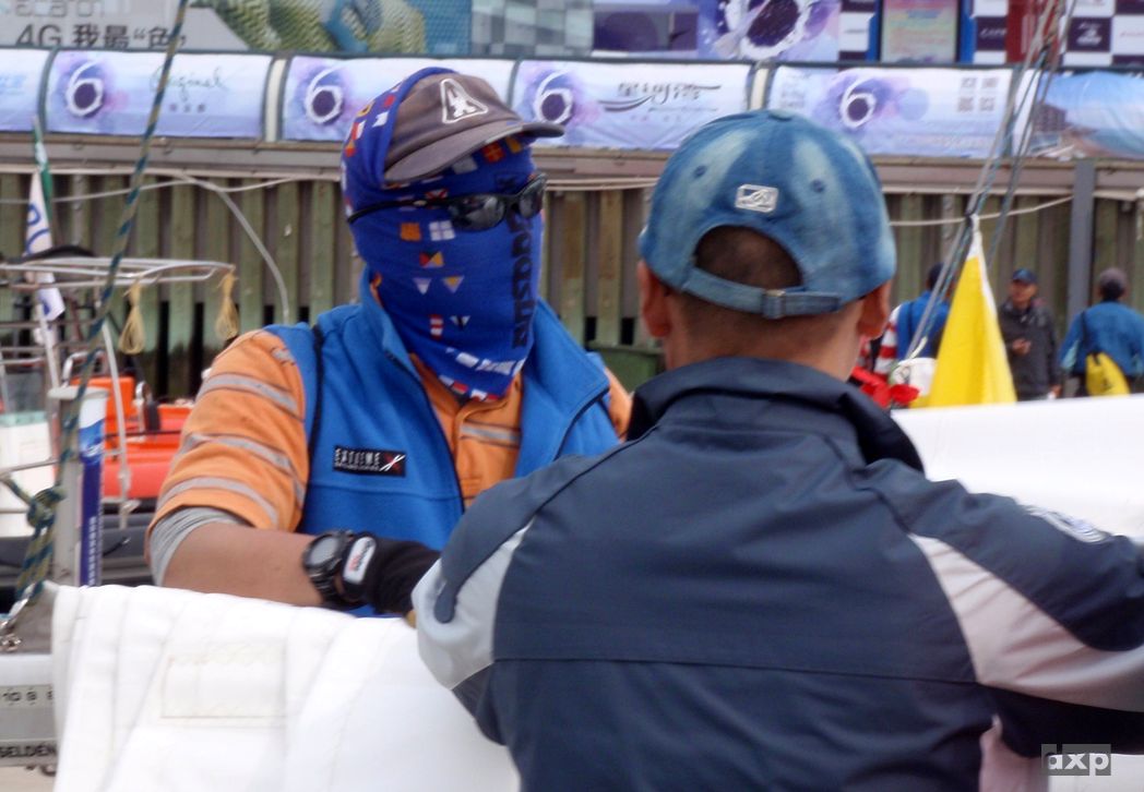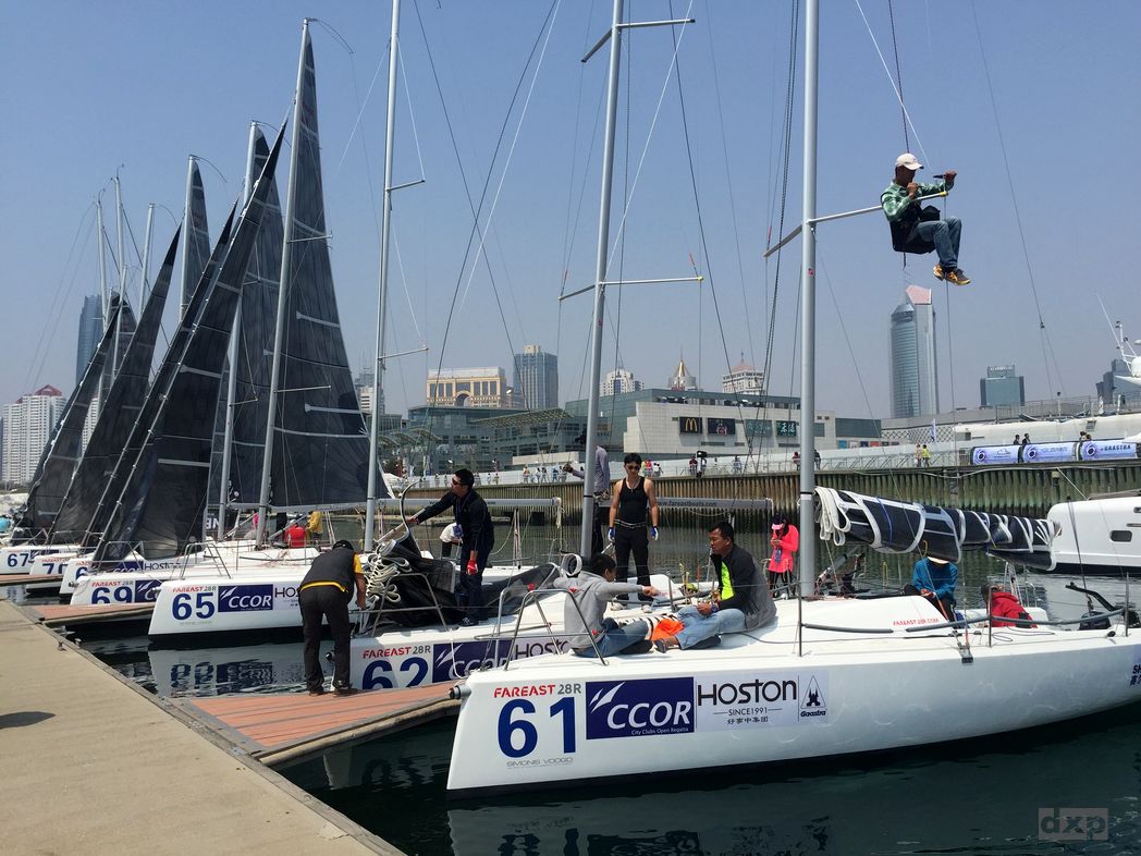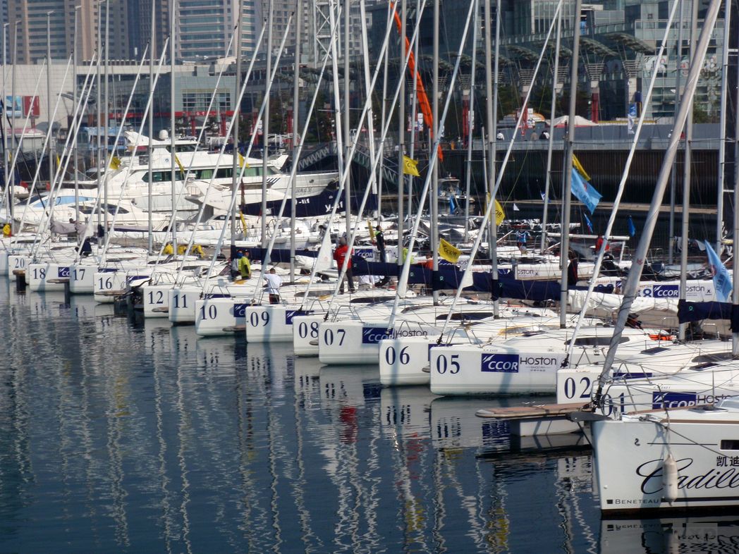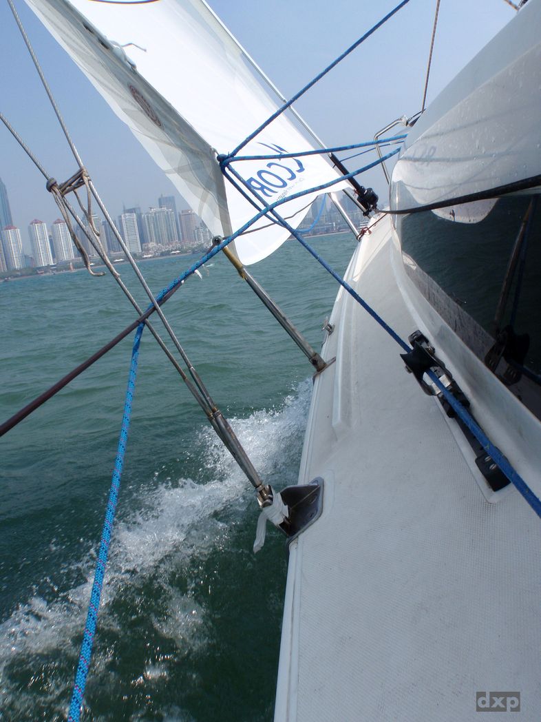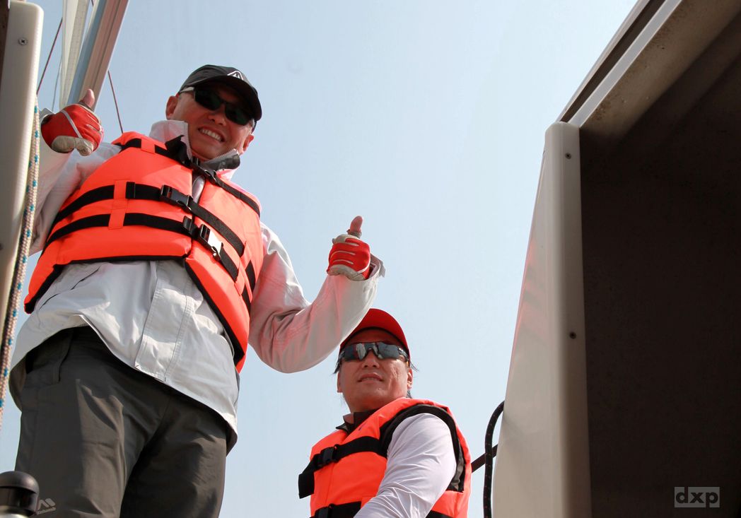 Samstag ist Anreise. Mit Frederick komme ich aus Shanghai angereist. Am Steg treffen wir das restliche Team. Sand wohnt in Qingdao. Yesir und Fan sind schon einen Tag vorher angereist. Wir hatten die letzten Monate keine Zeit zum Trainieren. Spinnaker hatten wir noch nie zusammen probiert. Wir machen das Boot klar. Um 16:00 ist Skipper Meeting. Vorher muessen wir noch mal mit raus zum ueben.