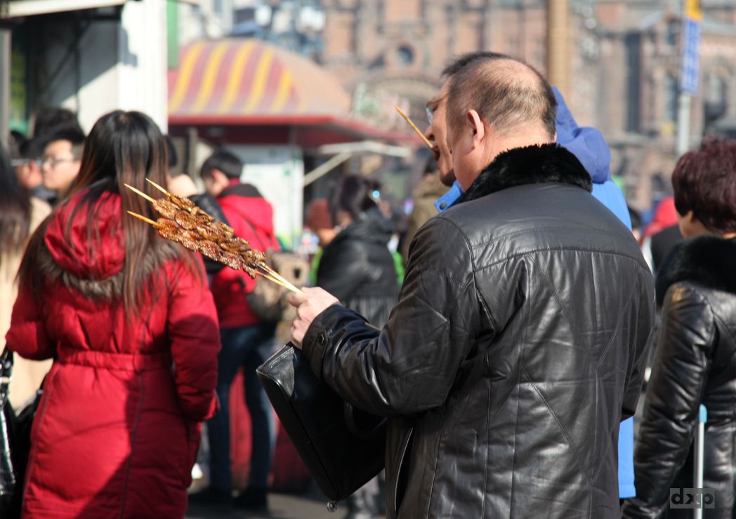 Nachmittags erkunde ich noch die Stadt. Durch die Nähe zu Russland haben Kultur und die Architektur einen entsprechenden Einschlag. Breite Straßen. Zwiebeltuermchen. Saeulen. Kirchen. Essen. Kleidung. Alles erinnert etwas an Russland. Chinese New-Year steht vor der Tür. Überall gibt es Geschenke zu kaufen. Schafe sind überall zu sehen und werden auf alles gedruckt oder gestickt. Bündelweise “Papiergeld” wird angeboten, um dies zu “opfern”.