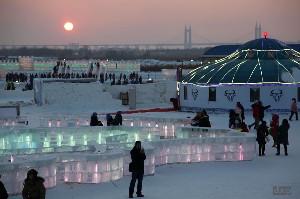 Ein Wochenende in Harbin, der Hauptstadt der Provinz Heilongjiang, weit im Norden Chinas. Kurz vor der russischen Grenze, am Songhua Jiang Fluss, findet jedes Jahr das Snow & Ice Festival statt. Bei -30 bis -40 Grad werden aus dem zugefrorenen Fluss Eisquader geschnitten um daraus beeindruckende Skulpturen und Gebäude zu bauen. Im Eis eingeschmolzene Lichter beleuchten die am Abend die Skulpturen in vielen Farben.