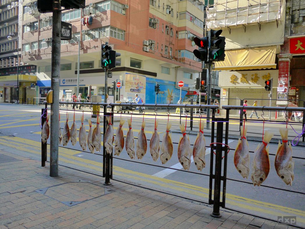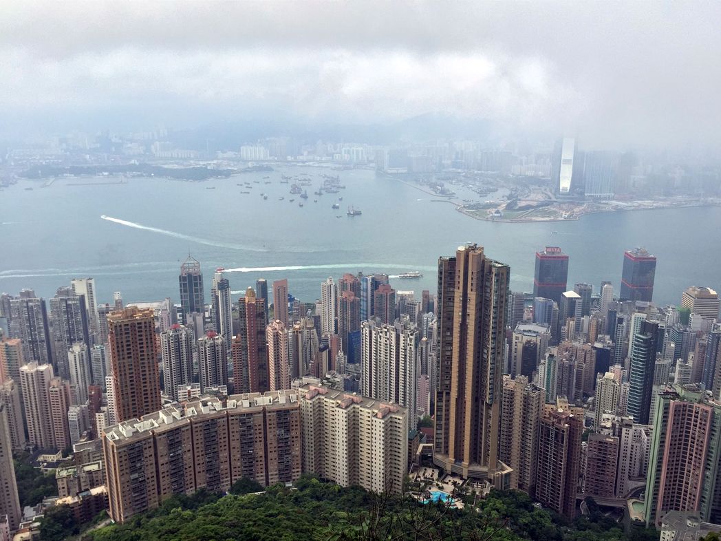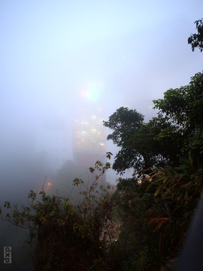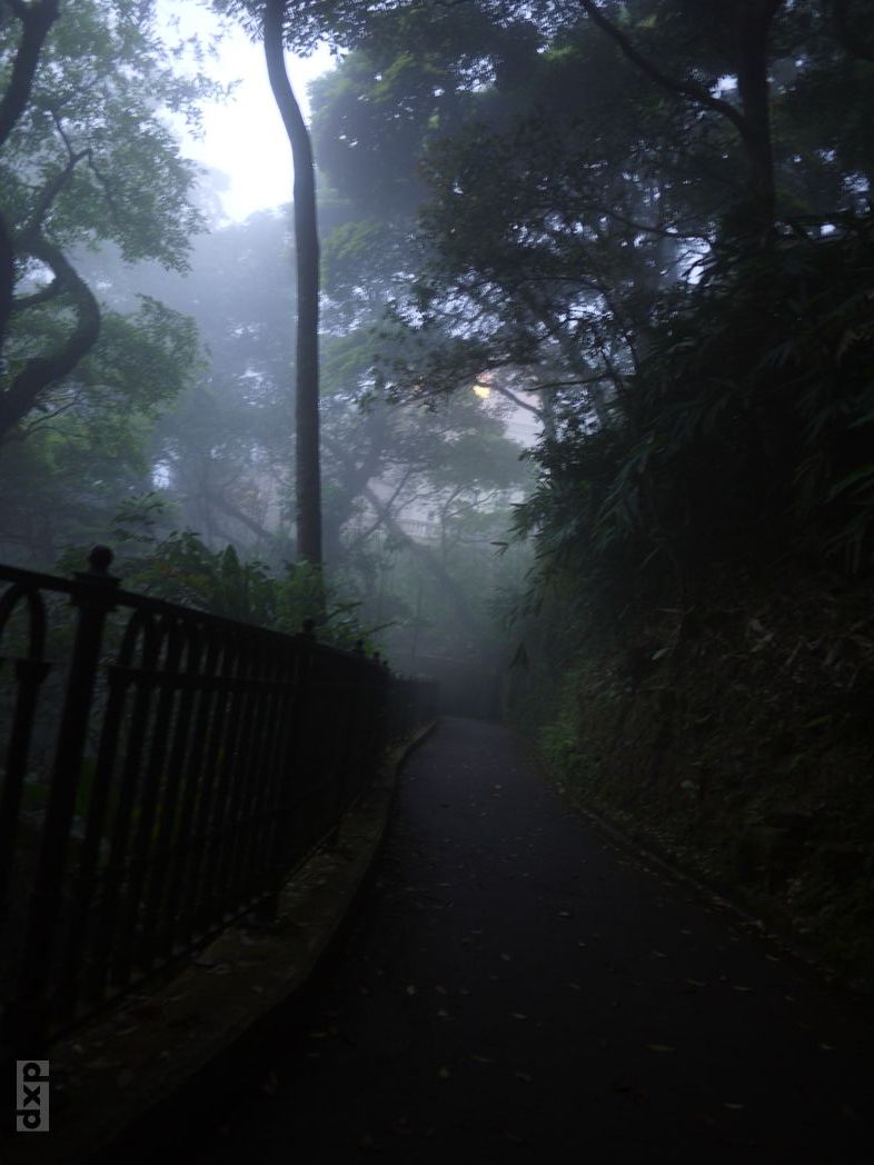 Der Tag ist noch früh und ich will noch was von der Stadt sehen. Nach dem Winter in Shanghai ist mir nach Bewegung. Hinauf zum Peak will ich. Direkt vom Hotel weg geht’s los, hinauf in Richtung Berg. Nach 30 Minuten über steile Treppen und Wege ist man an der oberen Stadtgrenze. Vogelgezwitscher. Der Stadtlärm wird von den Bäumen verschluckt. Steil bergauf geht es. Die Bäume geben etwas Schatten. Weiter oben wird es ein paar Grad kühler, ein angenehmer Wind weht. Der Höhenweg schlängelt sich weit über den Hochhäusern am steilen Abhang entlang. Ein toller Blick über die gesamt Bucht von HK und die Wolkenkratzer der Stadt. Auf kleinstem Raum reiht sich ein Turm an den nächsten. Wie auf einem Nadelkissen stechen die Spitzen weit in den Himmel. Die schnellen Fähren nach Macau malen weiße Streifen in das Wasser der Bucht. Am Peak ist es dann vorbei mit Ruhe. Hier kommt die Peak Tram an und es ist großer Rummel. Ich warte noch etwas bis es dunkel wird, um das Lichtermeer HKs zu sehen. Leider zieht dichter Nebel durch. Gespenstisch. Wie in einem alten Krimi wird der Weg in diffuses Licht der Straßenlaternen getaucht.