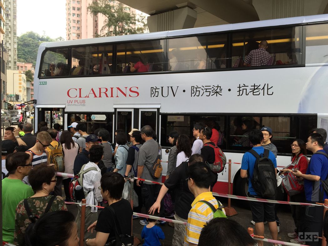 Erst mit der Metro zum Stadtrand, Shau Kei Wan Station, und dann mit Bus Nr 9 zum Startplatz an der Shek O Road bei Tei Wan Village. Die Idee haben an dem Ferienwochenende wohl viel. Die Schlange am Busbahnhof ist lange. Ich hatte lange geschlafen, auf dem Weg noch einen Kaffee getrunken. Jetzt um 09:30 bin ich wohl mit dem Mainstream am Start. Egal. Professional wird die Schlange in Busse verfrachtet. Den Bus 9 nehmen viele. Die Strecke führt über den Berg zu einigen Badebuchten auf der anderen Seite der Insel.