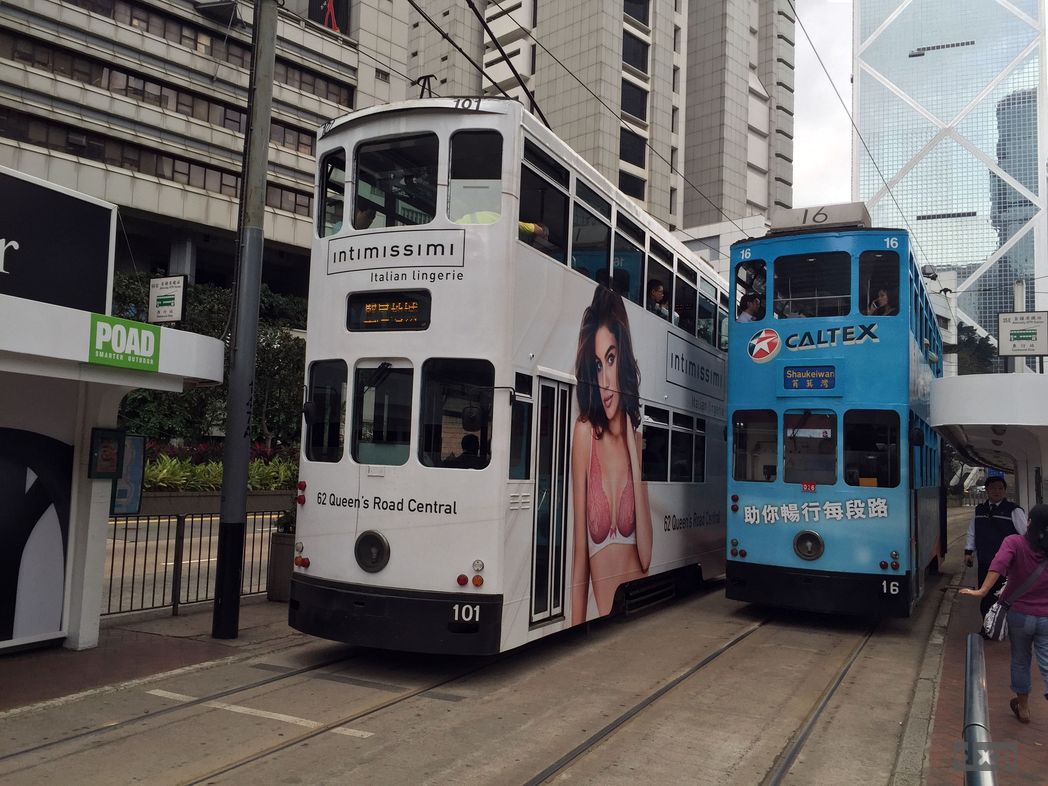 Mit der Star-Ferry fahre ich von Kawloon nach HongKong. Leider ist das Wetter etwas trübe und die Skyline nur undeutlich zu sehen. In Causeway Bay, dem Finance Viertel, ein paar Strassen um dann mit der alten Doppelstock Tram nach Central zu fahren. Die fahrt geht durch die Hochhausschluchten, vorbei an Parks und geschäftigen Straßen. Die erhabenen Perspektive aus dem zweiten Stock bietet tolle Bilder. Ich genieße die Fahrt und die vorbeiziehenden Szenerie.