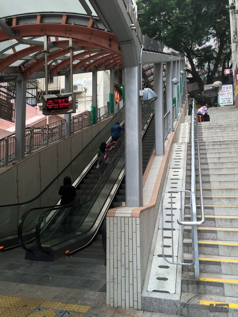 Wieder frisch, mache ich mich auf den Weg nach Mid Level, quasi dem mittleren Teil HKs zwischen Wasser und Berggipfel. 100te Stufen geht es hinauf. Ich schwitze und schnaufe. Wer hier wohnt ist sicher fit. In Mid Level wandere ich wieder zurück nach Central, dem mittleren und belebtesten Teil der Stadt. Zwischen den Hochhäusern lässt sich immer wieder ein Blick auf die Bucht erhaschen. Palmengärten, Restaurants, Geschäfte, Schulen und Tempel. In Central fahre ich noch mit der längsten, offenen Rolltreppe der Welt.