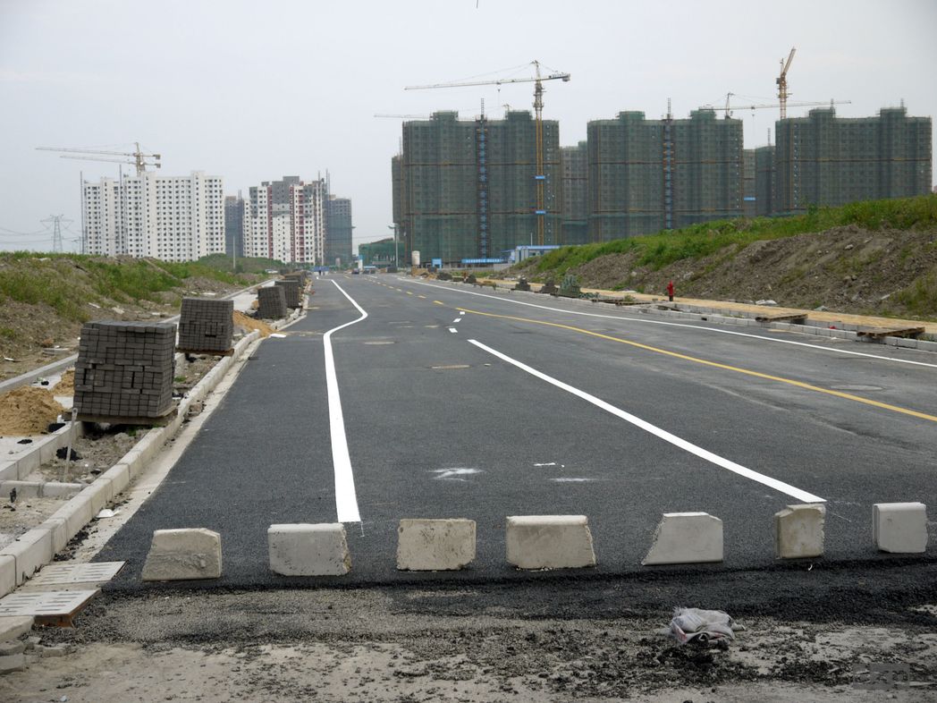 Ich habe mein Klapprad dabei. Mache mich damit nach dem Segeln auf den Heimweg. 50 km sind es bis zur Wohnung. 50km und immer noch nicht wirklich auserhalb der Stadt. Entlang der G318 radl ich quasi kontinuierlich durch Neubausiedlungen. Ueberall werden neue Hochhaeuser, Strasse, S-Bahnen und Shoppingcenter gebaut. Neue Staedte fuer millionen Leute. Wer’s nicht gesehen hat, es ist kaum beschreibbar. Frisch geteerte Strassen fuehren zu dreiviertel fertigen Staedten. Ein geschaeftiger Shoppingcenter der von Feldern und ersten Hochhausfundamenten umgeben ist. In ein paar Jahren wird auch hier ein neue Stadt sein. Bis 2030 sollen 3/4 der Chinesen in Staedten wohnen. Das sind 1 Milliarde Menschen.