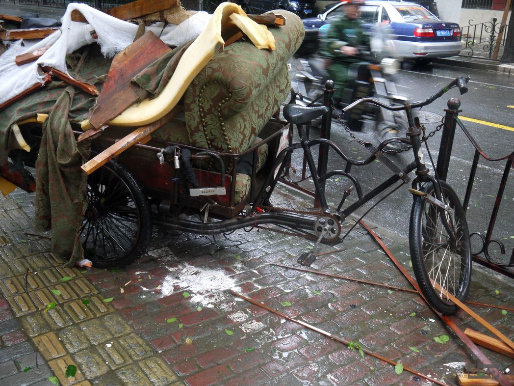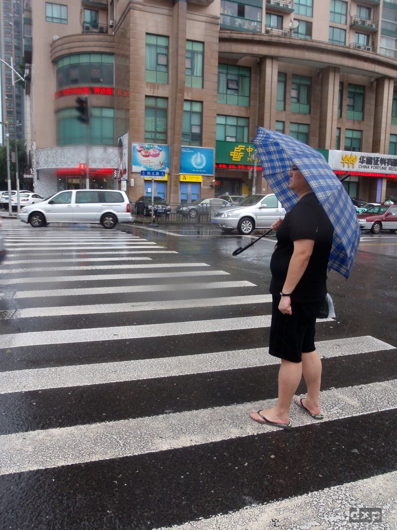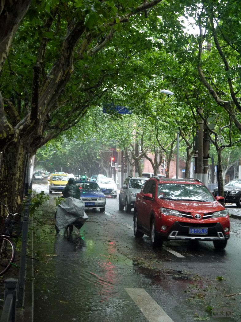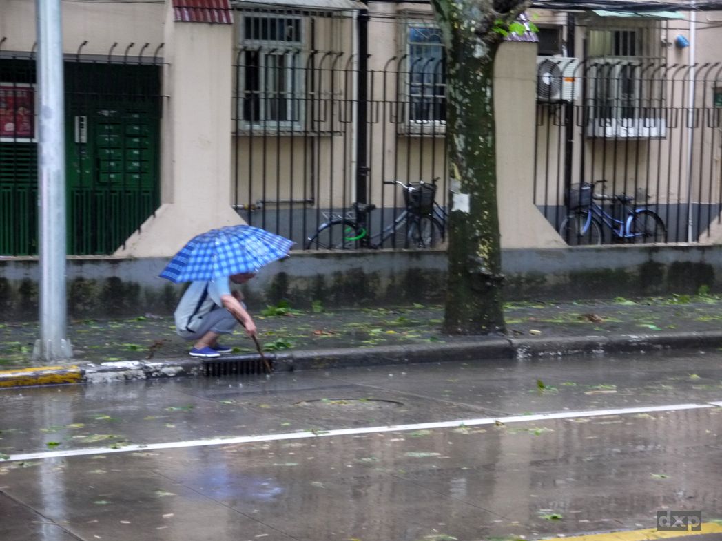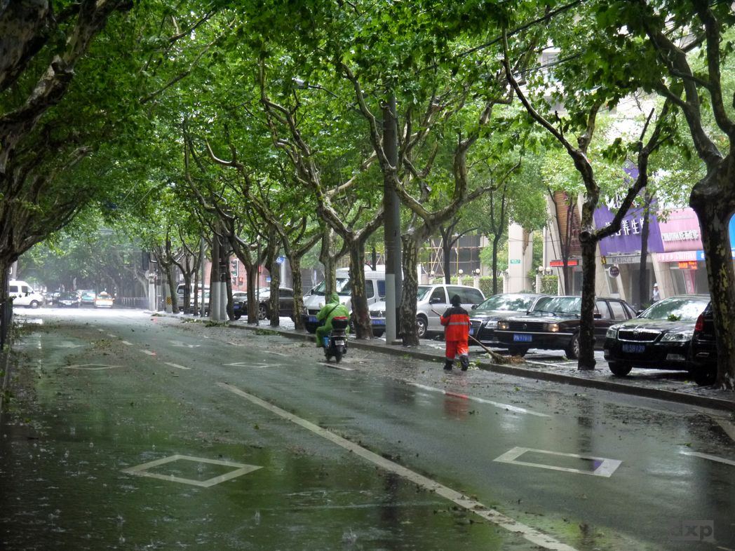 Am Samstagnachmittag trifft der Typhoon auf Shanghai. Obwohl sich der Typhoon abgeschwächt hat, immer noch weit über 100km/h, werden an den beiden Shanghai Airports insgesamt 750 Flüge storniert. Die Stadt ist wie ausgestorben. Kaum Autos unterwegs, die wenigen Leute lehnen sich wie Kämpfer mit Schirmen gegen den Wind.